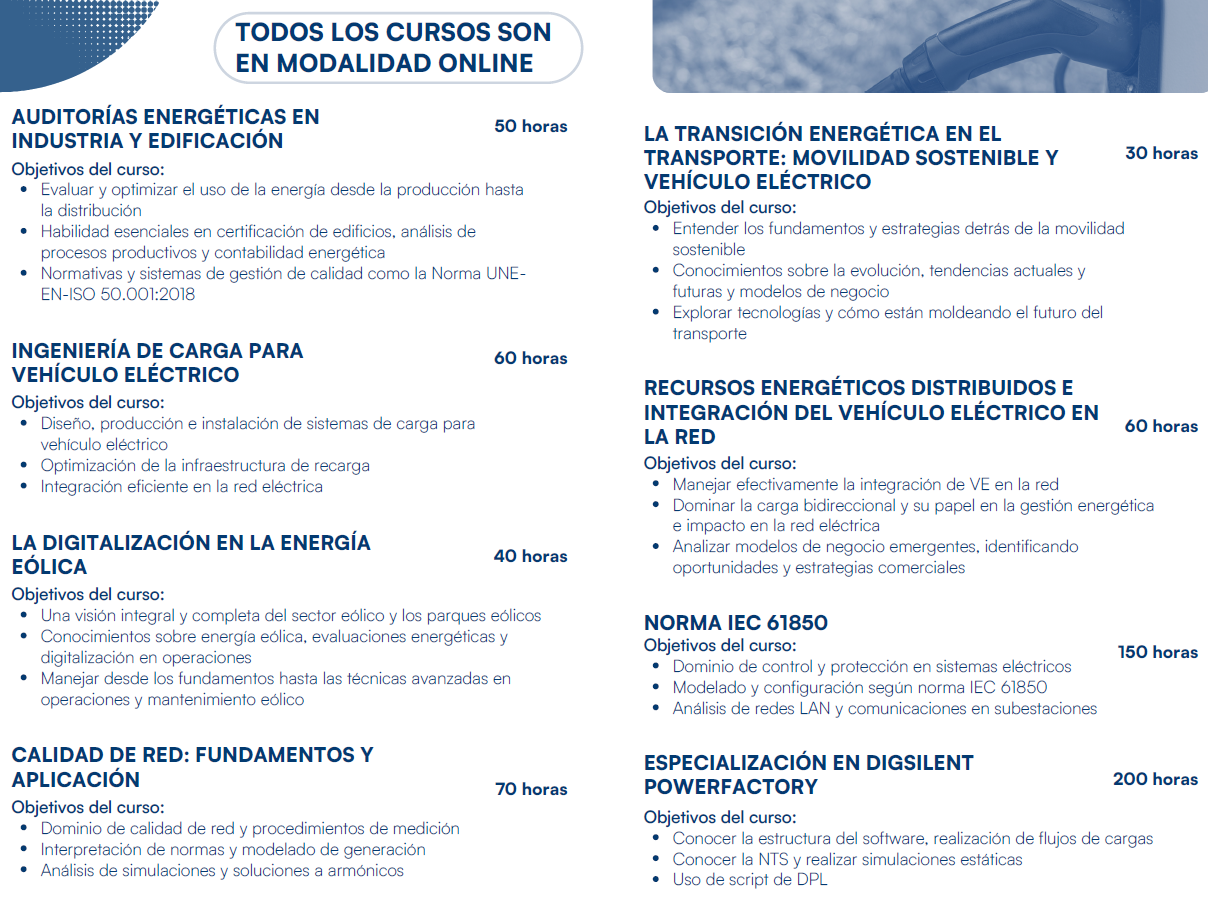 • Ingeniería de carga para vehículo eléctrico (60 h)